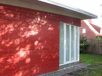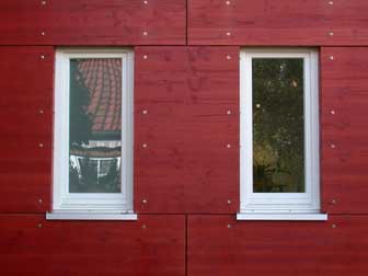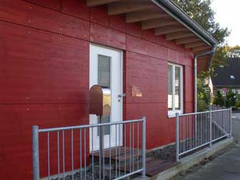 Anbau einer Rechtsanwaltskanzlei in Niedrigenergiebauweise an eine Doppelhaushälfte. Dieser kostengünstige Bau in Holztafelbauweise ist recyclinggerecht konzipiert, weist eine hohe Nutzungsflexibilität auf und ist aus umweltgerechten Baustoffen gefertigt. Diese Bauweise ist baubiologisch einwandfrei und konnte ab Baubeginn innerhalb von 3 Monaten schlüsselfertig übergeben werden. Das Objekt befindet sich im Carlo Schmidt-Weg, Elmshorn (Schleswig Holstein) und ist für die Rechtsanwaltskanzlei Christine Fliege erstellt worden. Planung und Realisation Thorsten Schütze, 2001. |