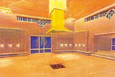 Das Seminarzentrum soll den Rahmen schaffen für die Unterbringung von Reisegruppen, denen dort in Form von Seminaren und Workshops Kenntnisse in diversen Bereichen indischer Kultur vermittelt werden. Es liegt auf 29,5° nördlicher Breite und 78° östlicher Länge, ca. 70 km Luftlinie westlich der Grenze zu Nepal, sowie 130 km südlich der sechs- und siebentausender Schneeberge in der wintertrockenkalten Klimazone des sogenannten Lesser Himalaya. Die Haupterwerbsquelle der dort lebenden Menschen stellt die Land- und Forstwirtschaft dar, wobei der Obstanbau einen großen Anteil der landwirtschaftlichen Nutzfläche einnimmt. Klimabedingt ist die landwirtschaftliche Nutzung nur von März bis November möglich. Forstwirtschaftlich wird überwiegend die natürlich ansässige Pinie genutzt. Der Entwurf orientiert sich an der traditionellen, örtlichen Bauweise die sich über Generationen entwickelt hat und den klimatischen Verhältnissen gut angepasst ist. Dabei handelt sich um maximal zweigeschossige, massive Gebäude, die aus vor Ort gebrochenen Natursteinen und Lehmen errichtet werden. Die Dächer bestehen aus einer Pinienholzkonstruktion. Zur Dachdeckung dienen traditionell großformatige Schieferplatten. Auf die Verwendung von Stahl und Zement wird weitgehendst verzichtet. Die Gebäude werden in die bestehende Vegetation eingepasst, so dass diese weitgehendst erhalten bleibt und im Sommer weiterhin ein angenehmes Mikroklima schaffen kann. Durch Sammeln und Reinigen des Regenwassers von den bebauten Flächen ist eine ausreichende und unabhängige Wasserversorgung gewährleistet. Aufgrund der eigenen Abwasseraufbereitung anhand einer Pflanzenkläranlage ist eine ganzjährige Bewässerung der Obstbäume und geplanten Gemüsefelder möglich. Die Orientierung an regionalen Gestaltungsprinzipien, sowie die Anwendung lokaler Bautechniken und Materialien kann schon während der Bauphase den Integrations- und Akzeptanzprozess bei der lokalen Bevölkerung fördern. Die Arbeit basiert auf der der Jahrtausende alten indischen Bautradition Vaastu-Shastra unter Zuhilfenahme des Vastupurusha Mandala. Gemäss der indischen Mytologie wurde das Universum geschaffen und konnte erst durch den Ausschluss des urzeitlich Übernatürlichen, oder kosmischen Mannes, in Ordnung gebracht werden. Die Vorstellung des Ausschlusses und somit Einschließen in eine Form beschreibt den Sieg der Ordnung über das Chaos, -des Guten über das Schlechte und des Lichtes über die Dunkelheit. Die indische Architektur hat das Thema des kosmischen Mannes, der die Quelle alles vom Menschen geschaffenen ist, in der Konzeption des Vastupurusha Mandalas übernommen. Vastu bedeutet soviel wie Platz, oder Ort und Purusha steht für etwas vom Menschen geschaffenes und beschreibt somit die Wechselbeziehung zwischen dem Ort und dem Individuum. Es dient als Ausgangsform für die Architektur und der ihr verwandten Künste. Es handelt sich um ein aus Quadraten zusammengesetztes Quadrat, welches als perfekte Form angesehen wird. Eingeschlossen in diesem Quadrat befindet sich der Halbgott Vastupurusha, der das, auf dessen Grundlage, geplante Gebäude beherrscht. Die Seiten des Quadrates sind auf die vier Himmelsrichtungen ausgerichtet: es macht Raum begreiflich und wird daher als allumfassendes Symbol der Welt angesehen. Die Unterbringung der bis zu 48 Gäste erfolgt im westlichen Bereich des Geländes in vier Bungalows und jeweils einem Gebäude mit Einzel- und Doppelzimmern. Das Zentrum der Anlage bildet ein Atriumhaus, dem zwei Seminarsäle, sowie ein Bade- und Massagehaus angegliedert sind. Im östlichen Bereich befinden sich der Speisesaal, die Küche, ein thermische Solarkraftwerk und ein Glashaus. Um eine passive Nutzung der Solarenergie zu gewährleisten wird Isolierglas verwendet, welches energietechnisch, wie gestalterisch eine sinnvolle Ergänzung zu den traditionellen Materialien darstellt. Dezentrale Solaranlagen versorgen die Gebäude mit fließend heißem Wasser. Das Glashaus mit einer integrierten thermischen Solaranlage dient als zentraler Versorger für die Fußbodenheizungen der Seminarräume und es ermöglicht das Ziehen von Gemüse und Kräutern im Winter. Im Sommer kann es zur Trocknung des, auf dem Grundstück geernteten Obstes dienen. Eine thermische Solaranlage bietet den gewünschten Komfort von fließend heißem Wasser und einer Fußbodenheizung in den Seminarräumen. Die für die Anlage benötigte elektrische Energie soll über ein, von der Firma Bomin Solar Research entwickeltes, thermisches Solarkraftwerk erzeugt werden, wobei der Energieüberschuss ins lokale Netz eingespeist werden kann. |